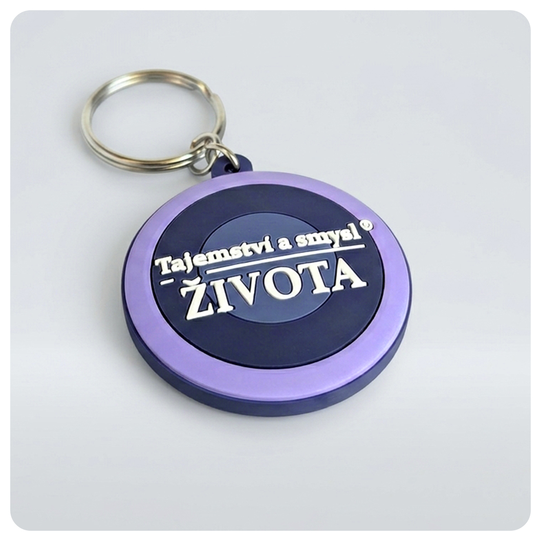 Klíčenka Tajemství a smysl života – protáhlá, fialová
