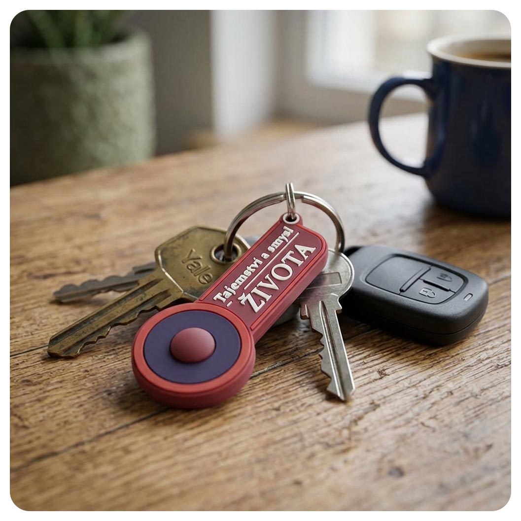 Klíčenka Tajemství a smysl života – protáhlá, červená