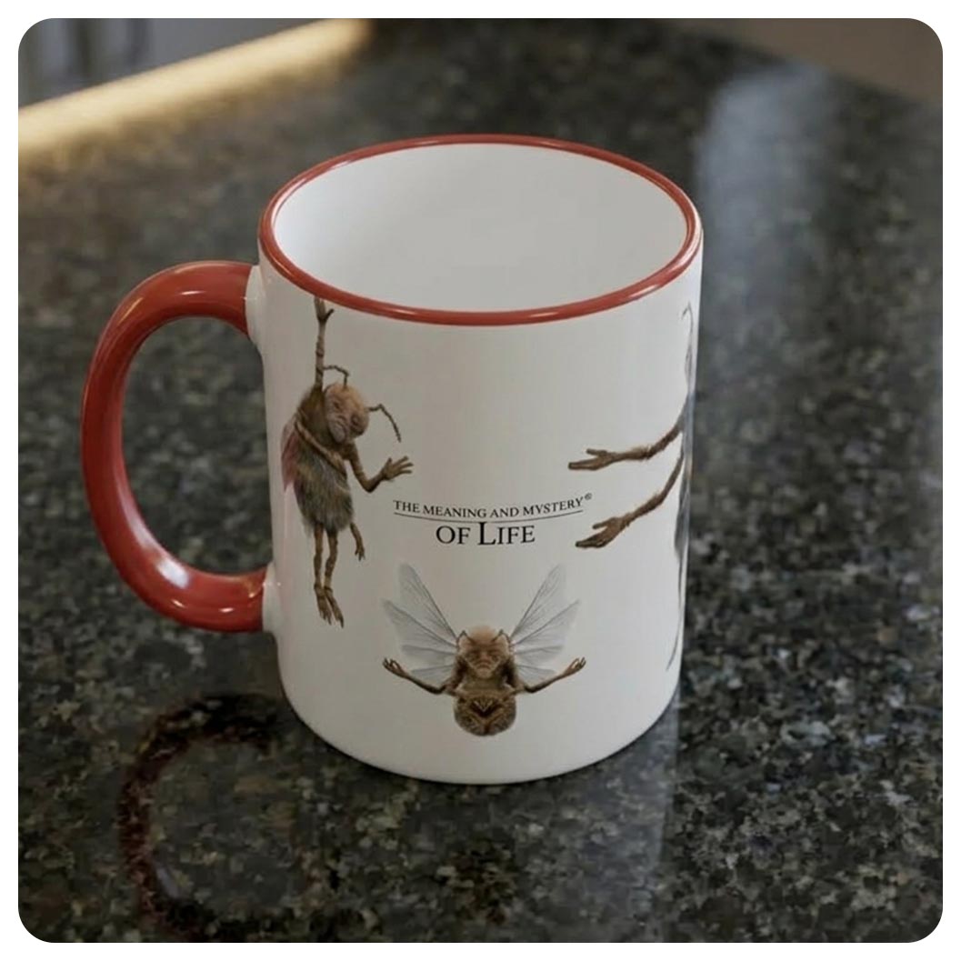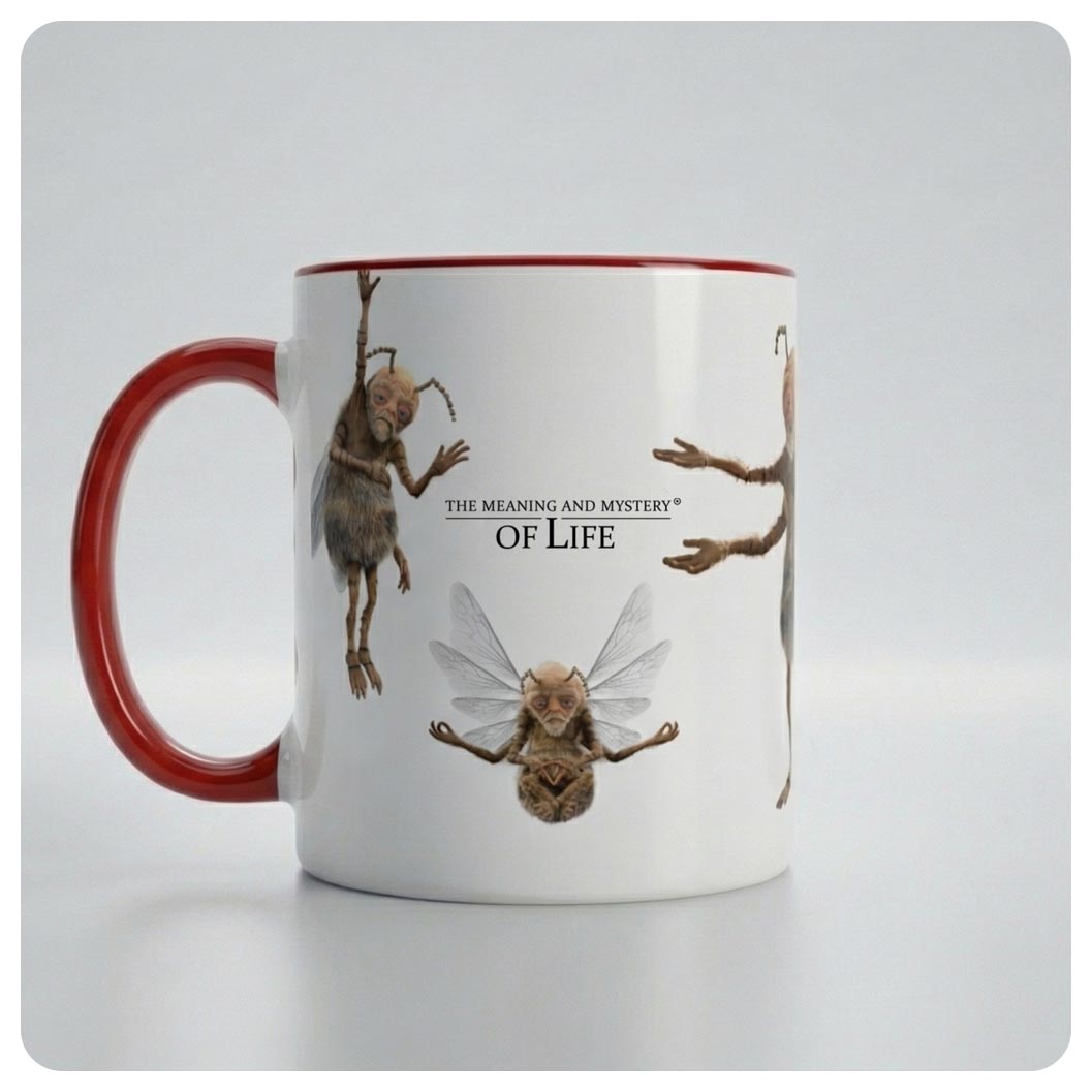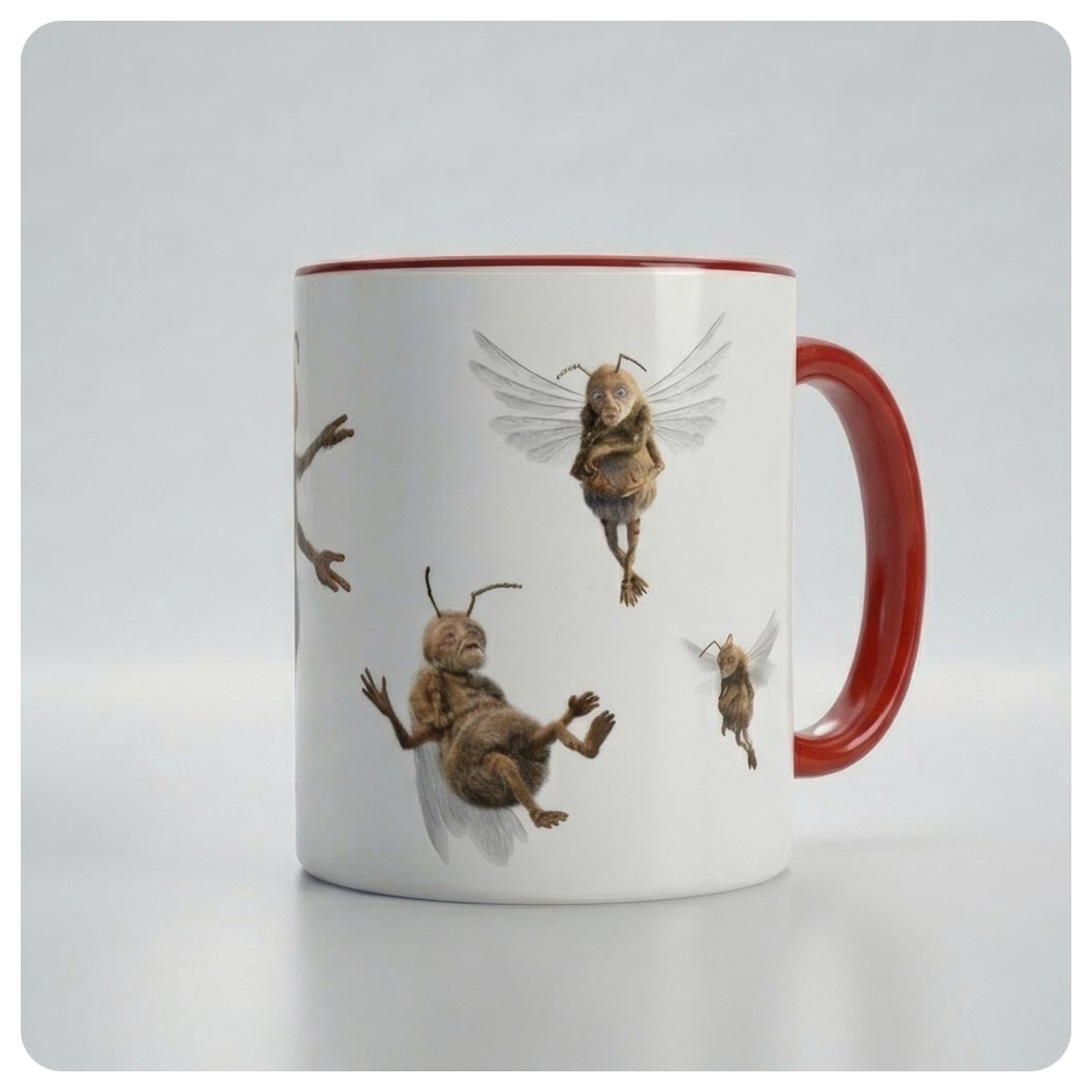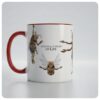 Keramický hrnek s bílým vnitřkem a barevným uchem.